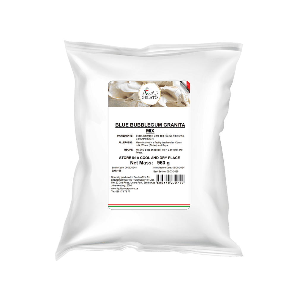 Simply mix 960g of powder with 4 litres of water, stir well, and freeze for an instant, flavour-packed bubblegum slush. Kosher and Halaal certified, this mix is ideal for cafés, dessert shops, and home use, ensuring consistent flavour and a refreshing experience with every batch.
